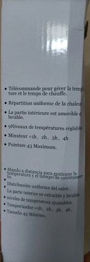 - Temperature Settings: 9 adjustable levels